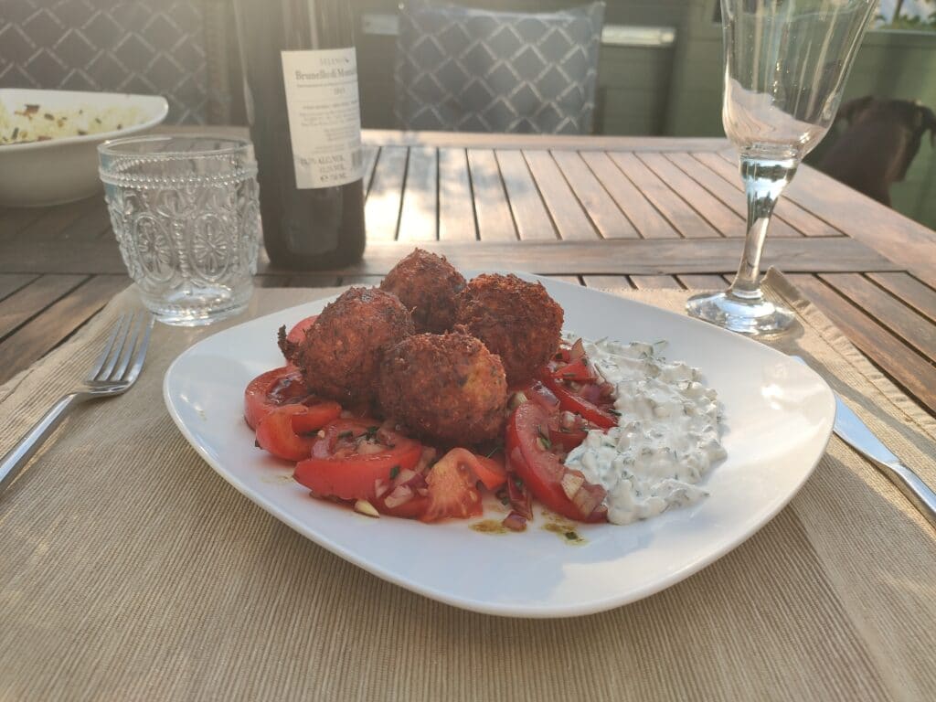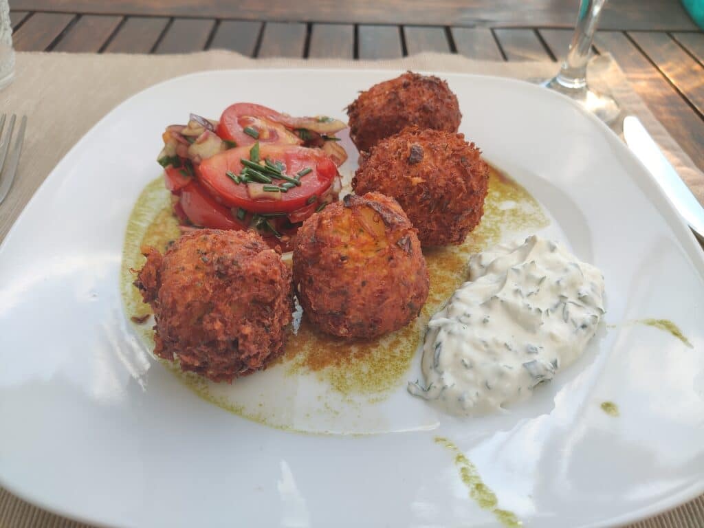 Bärlauchkugeln mit Korinthen & Honig – Frittierte vegetarische Kugeln, die herzhaft und süßlich zugleich schmecken. Eine Geschmacksexplosion im Mund.